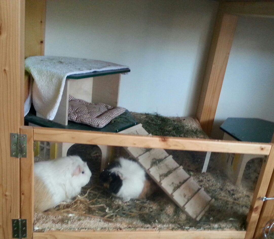Nun saß Peggy alleine im großzügig gebauten Pflegestall, in Hörweite von den anderen Schweinchen aber nicht mehr im Blickkontakt.