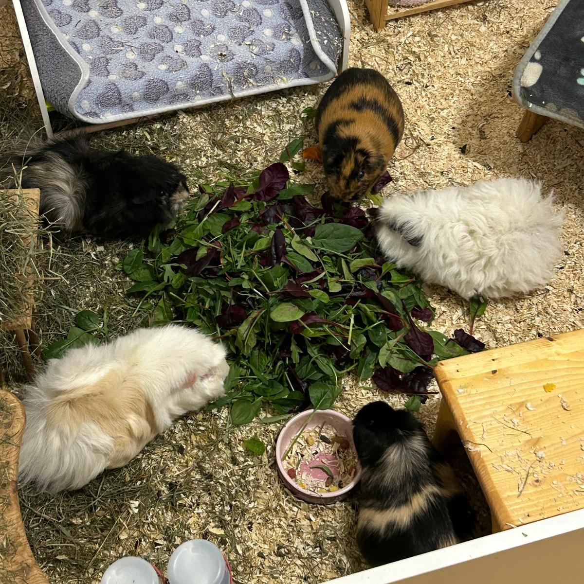 Svenja und ihre Tochter Ainu kamen im September 2024 leider zu uns zurück. Sie kommen beide aus einem tollen & liebevollen Zuhause aber der neugeborene Sohn hat eine extreme Allergie gegen die Meerschweinchen und eine artgerechte Haltung ist so einfach nicht möglich. Sehr schweren Herzens zogen die beiden Zuckerschnuten wieder bei uns ein.