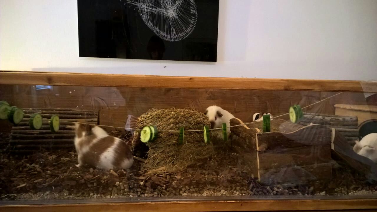 Tschitschi wurde zusammen mit ihrem Freund Balduin abgegeben, weil ein Nachwuchs in der Familie nicht mehr genügend Zeit und ausreichend Platz für die Meerschweinchen zuließ.