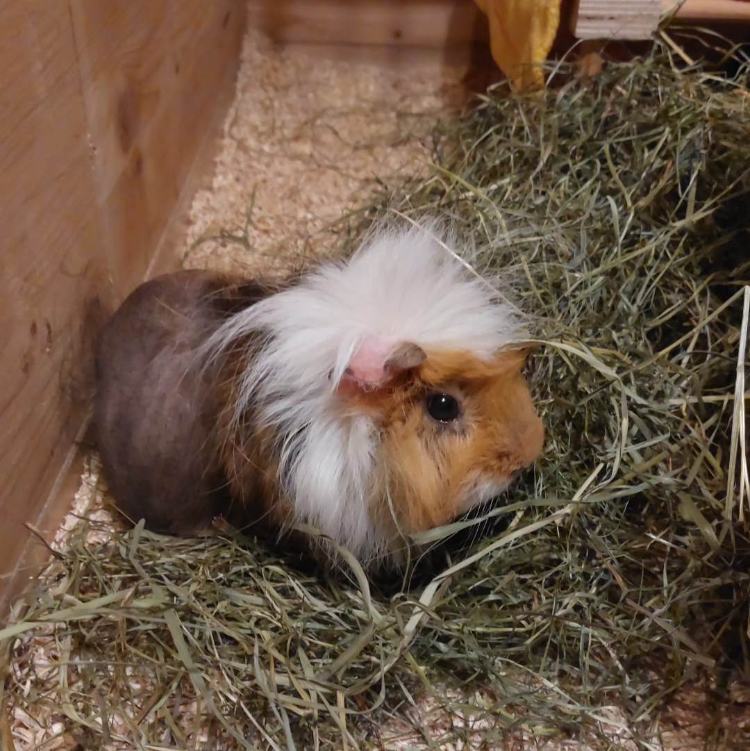 Lina wurde im Februar 2025 über das Tierheim Rosenheim bei den Heuwuslern aufgenommen. Sie stammte von einem Halter von Schlangen, der Meerschweinchen als Futtertiere hielt. Dieses Leid konnte dieser besonders hübschen Meerschweinchen-Dame Gott sei Dank erspart bleiben.