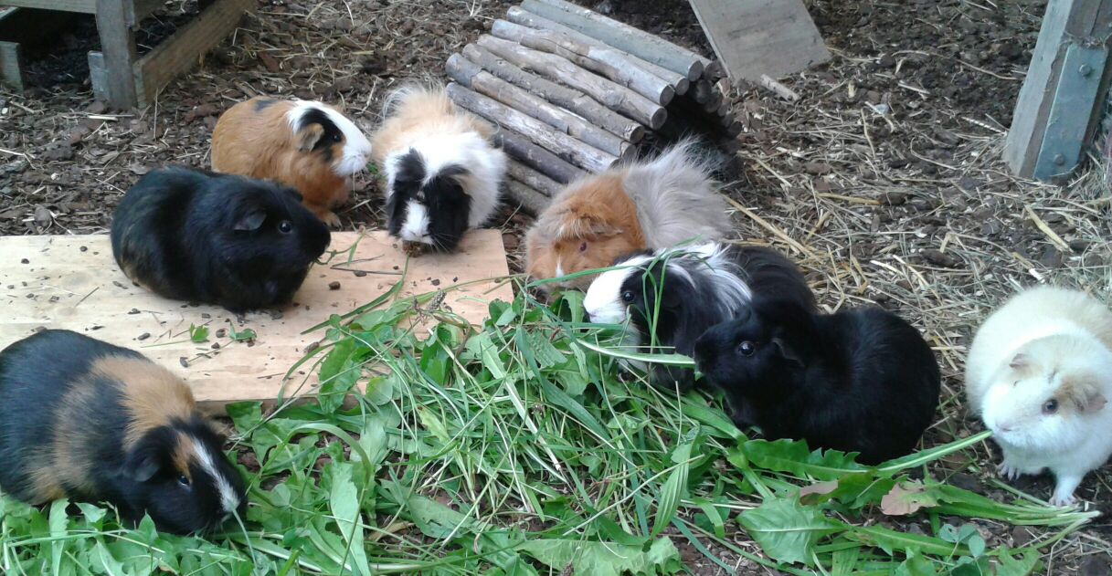 Wie bereits im letzten Eintrag geschrieben, haben wir zunächst 49 Meerschweinchen und 1 Kaninchen übernommen. Sehr viele Mädchen waren trächtig und es setzte bei uns ein regelrechter Baby-Boom ein. 32 Babys wurden geboren (2 fehlen auf dem Foto):