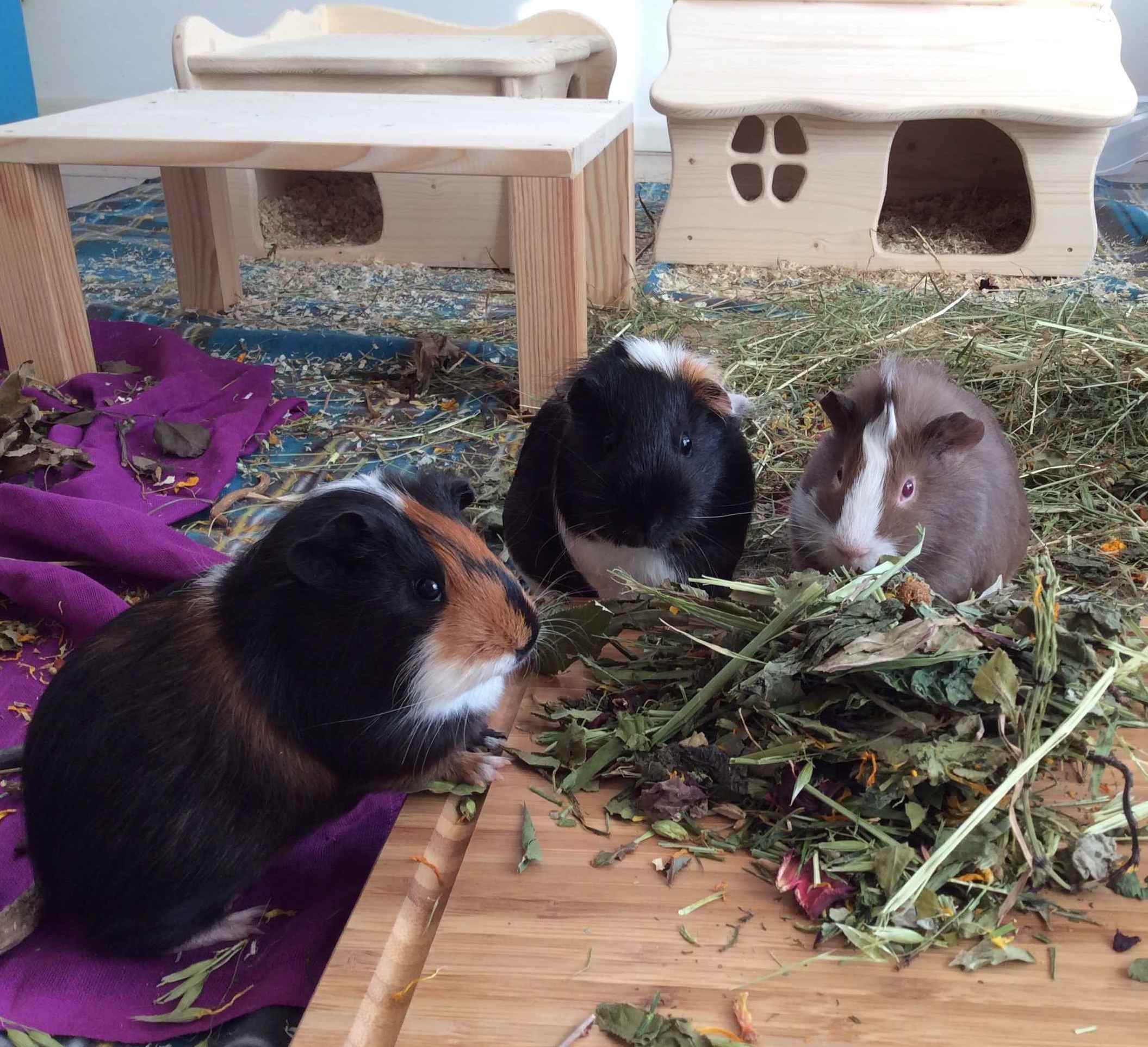 Lisa wurde bei uns abgegeben, weil das zweite Meerschweinchen der Familie gestorben war und die Haltung beendet werden sollte. Sie lebte bisher in einem 120er Käfig. Schon vor Abgabe war klar, dass sie in die Gruppe zu Herrn Hummel und Teppich ziehen darf, wenn es mit den Dreien klappt.