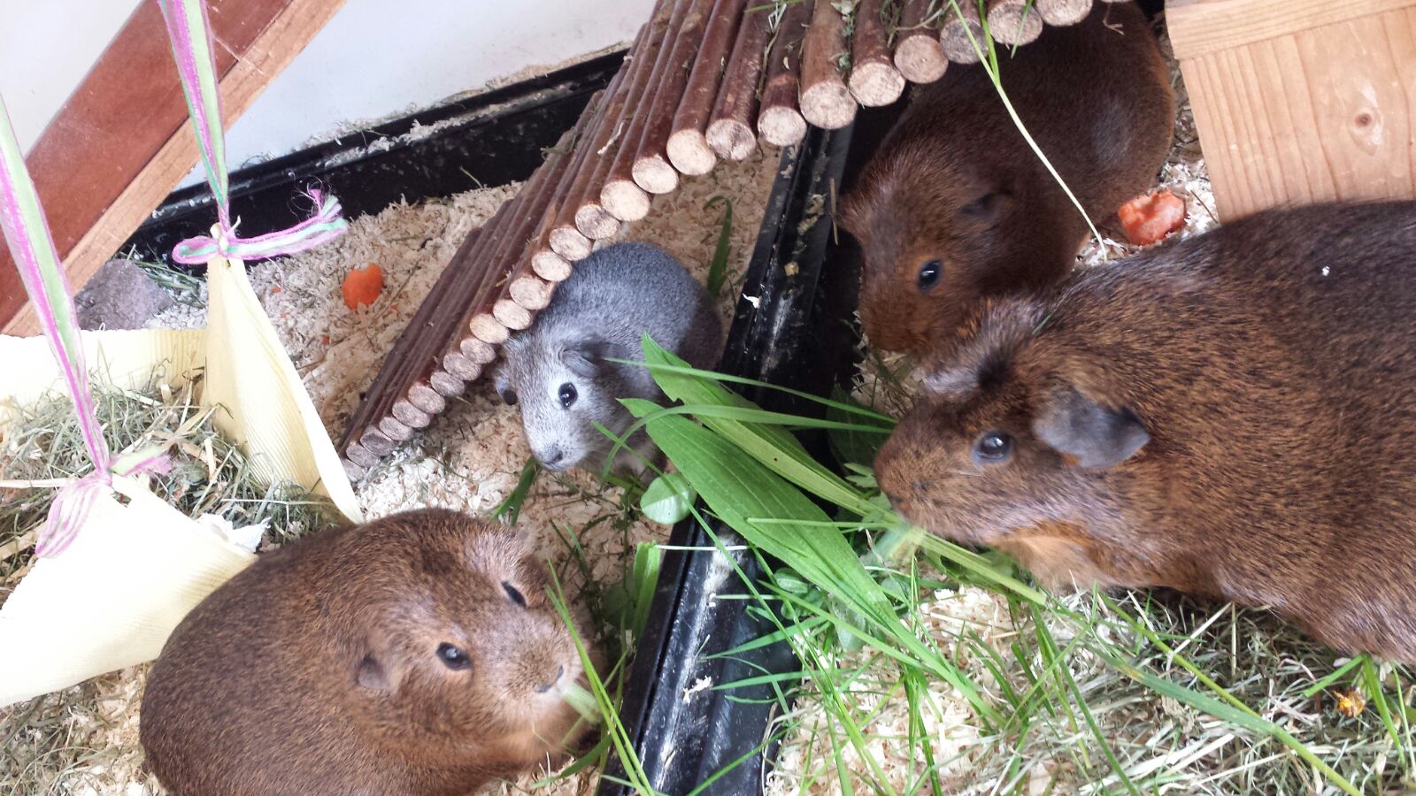 Die Haltung der Meerschweinchen war eine Katastrophe. Dank einer beherzten Tierfreundin, die zum Zeitpunkt vor Ort war, konnten zumindest zwei Meerschweinchen übernommen, nach Deutschland gebracht und medizinisch versorgt werden. Die Mama war zum Zeitpunkt der Übernahme schon trächtig und brachte die beiden am 12.03.2016 zur Welt.