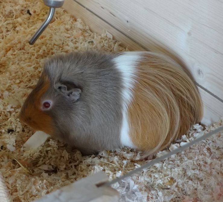 Lenno ist ein wunderhübscher kleiner Schweinemann mit einer sehr ungewöhnlichen, aber feschen Punkfrisur und himbeerroten Augen. Er stammt wie viele andere Tiere aus dem Animal-Hoarding-Notfall aus Rott am Inn. Wir übernahmen am 10.07.2016 50 Tiere, darunter sehr viele Babys wie Lenno, die keiner Mutter zugeordnet werden konnten, sowie viele Trächtige. Lenno musste auf seiner Pflegestelle lange auf ein endgültiges Zuhause warten, aber jetzt hat er es gefunden.