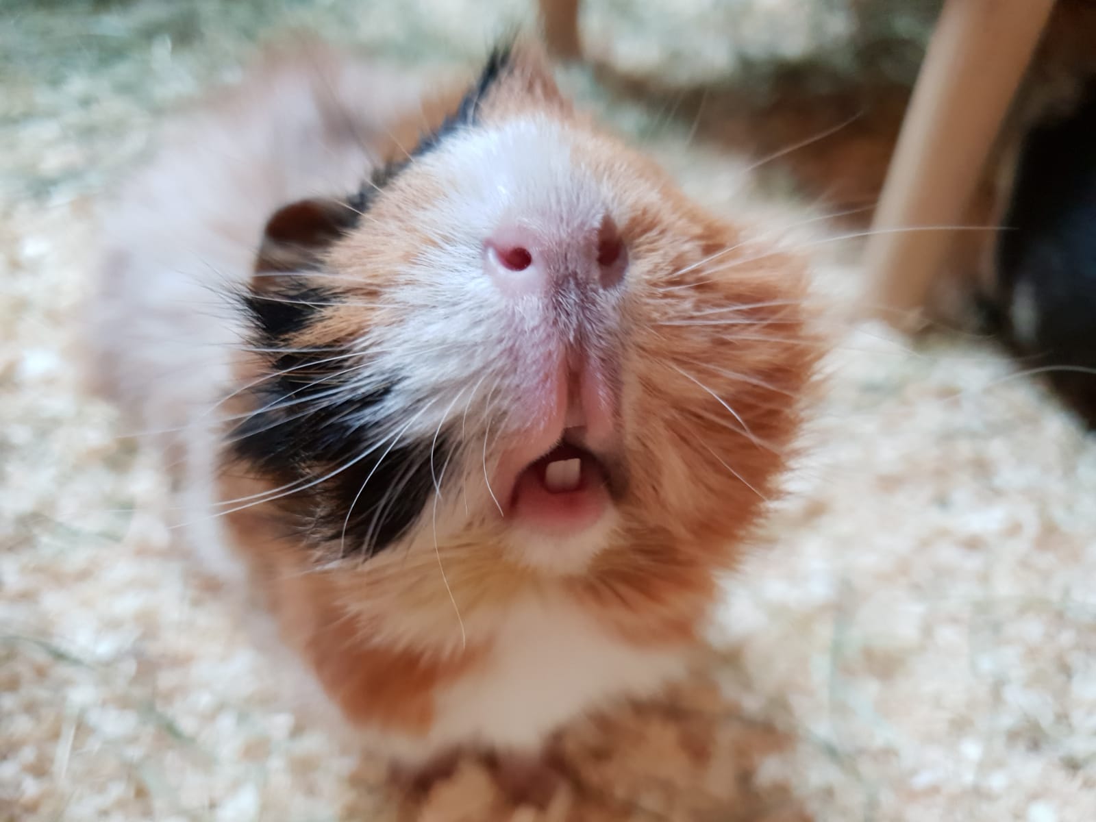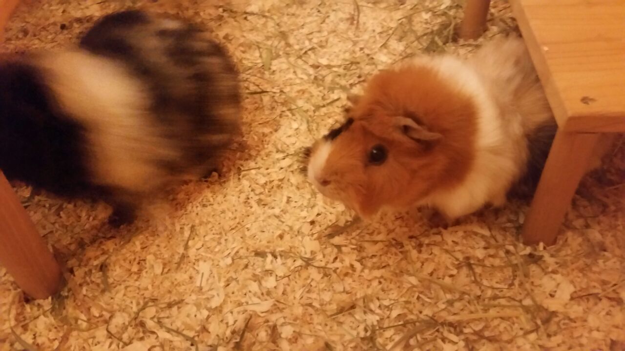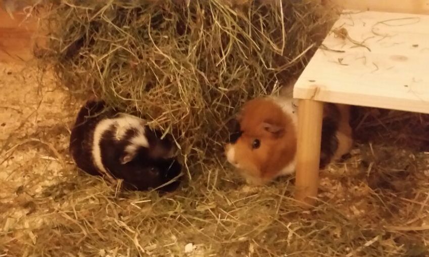 Mariechen hat ein Traumzuhause bei Ex-Heuwulser Lucky mit ganz viel Platz zum Erkunden und bester Rundum-Sorglos-Versorgung gefunden. Die Vergesellschaftung war recht unspektakulär. Lucky hat ein paar schlechte Erfahrungen in seinem Leben gemacht und ist daher sehr unsicher und ängstlich andern Meerschweinchen gegenüber. Mariechen hat das aber absolut super gemacht und ist sehr vorsichtig mit ihm. Sie bedrängt ihn nicht, muigt ihn immer ganz nett an und von Tag zu Tag kommt sie näher an den sensiblen Lucky heran. Ansonsten findet sie den wirklich großzügigen Eigenbau einfach super – so viel Platz zum Toben und Entdecken. Sie holt sich auch schon Leckerchen von ihren Gurkenschnibblern aus der Hand ab.