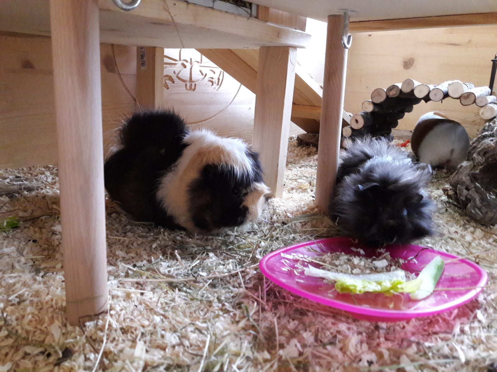 Louvre, jetzt Lulu, durfte auf einen Platz umziehen auf dem bereits die beiden Heuwusler Banana Cake & Snoopy wohnen. Die Familie hat sich schon sehr auf das neue "Familienmitglied" gefreut. Snoopy war von seinem zweiten Mädel sehr begeistert. Banana Cake war etwas zickig, hat Louvre dann aber ziemlich schnell akzeptiert. Beim gemeinsamen "Löwenzahn-Picknick" wurde die Freundschaft gefestigt. Die drei bewohnen ein großes Bodengehege und bei schönen Wetter genießen sie den Gartenauslauf.