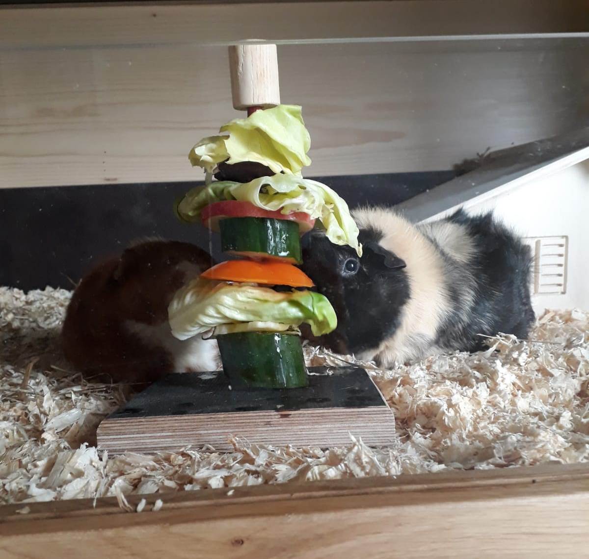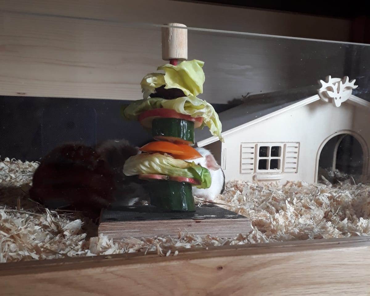 Am 06.04.2018 brachte Roma 3 gesunde Babys zur Welt. 2 Mädchen (Arminia & Feronia) und einen Buben (Trevi). Die Mutterrolle nahm sie sehr ernst und kümmerte sich rührend um die Kleinen. Zu ihrem großen Glück durfte sie auch zusammen mir ihrer kleinsten Tochter, Feronia, auf einen Spitzenplatz nach Pfaffenhofen/Ilm umziehen. Kastrat Jimmy hatte seine Partnerin verloren und zog sich sehr zurück. Saß nur noch im Häuschen und wollte nicht so recht fressen. Deshalb musste es recht schnell gehen, um ihm mit neuer Gesellschaft wieder zum Glück zu verhelfen. Roma und Feronia haben den Buben gleich für in Ordnung befunden, besonders die kleine Feronia findet ihn toll und läuft dem älteren Buben immer hinterher.