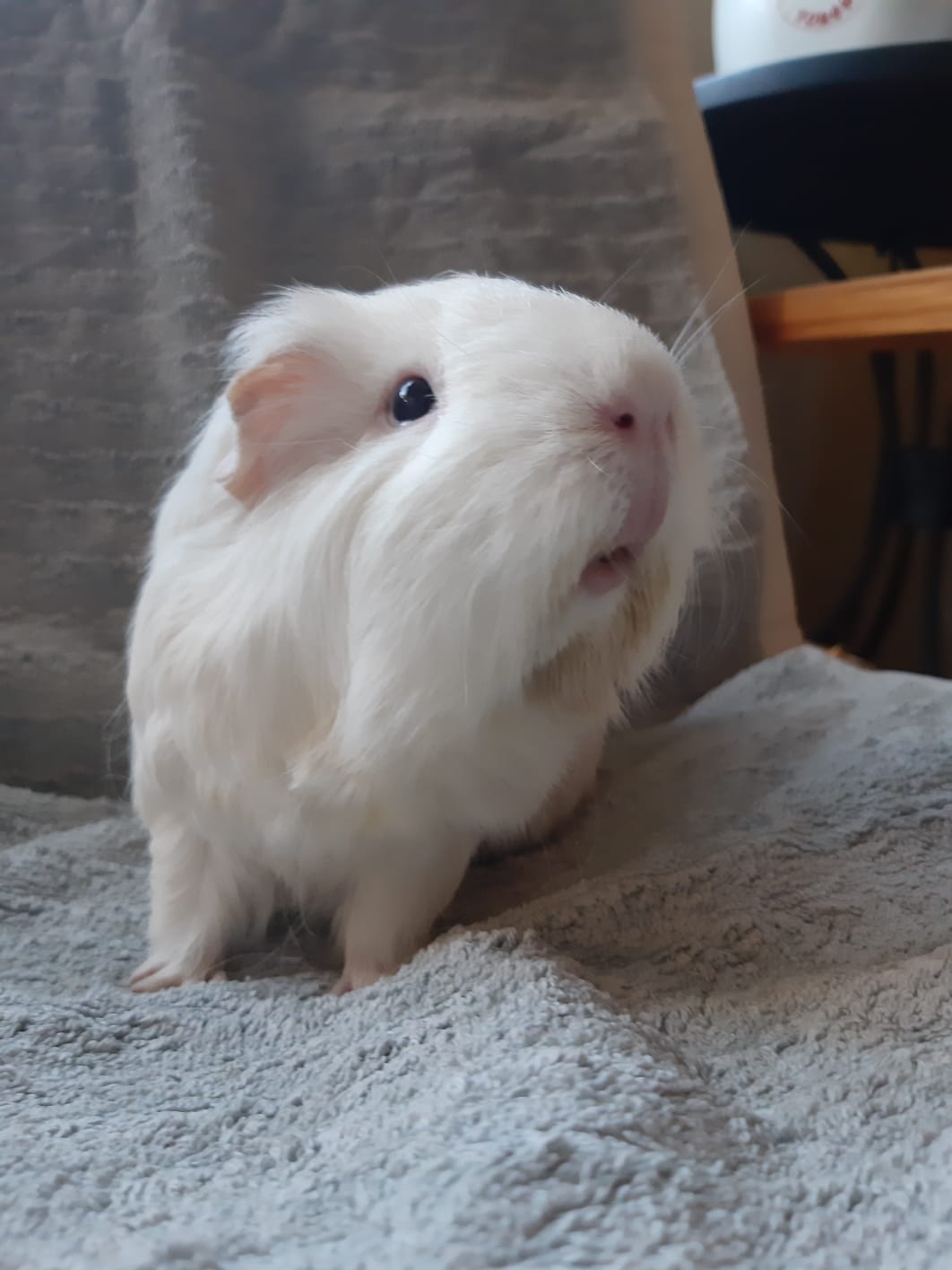 Darwin ist ein neugieriges, kaum schreckhaftes Schweinchen. Leider hat Darwin ein Zahn-Problem. Er hat unten einen "Elefanten-Zahn". Dieser wächst kaum und daher muss der Nachbar-Zahn derzeit leider alle zwei bis drei Wochen vom Tierarzt angeglichen werden.