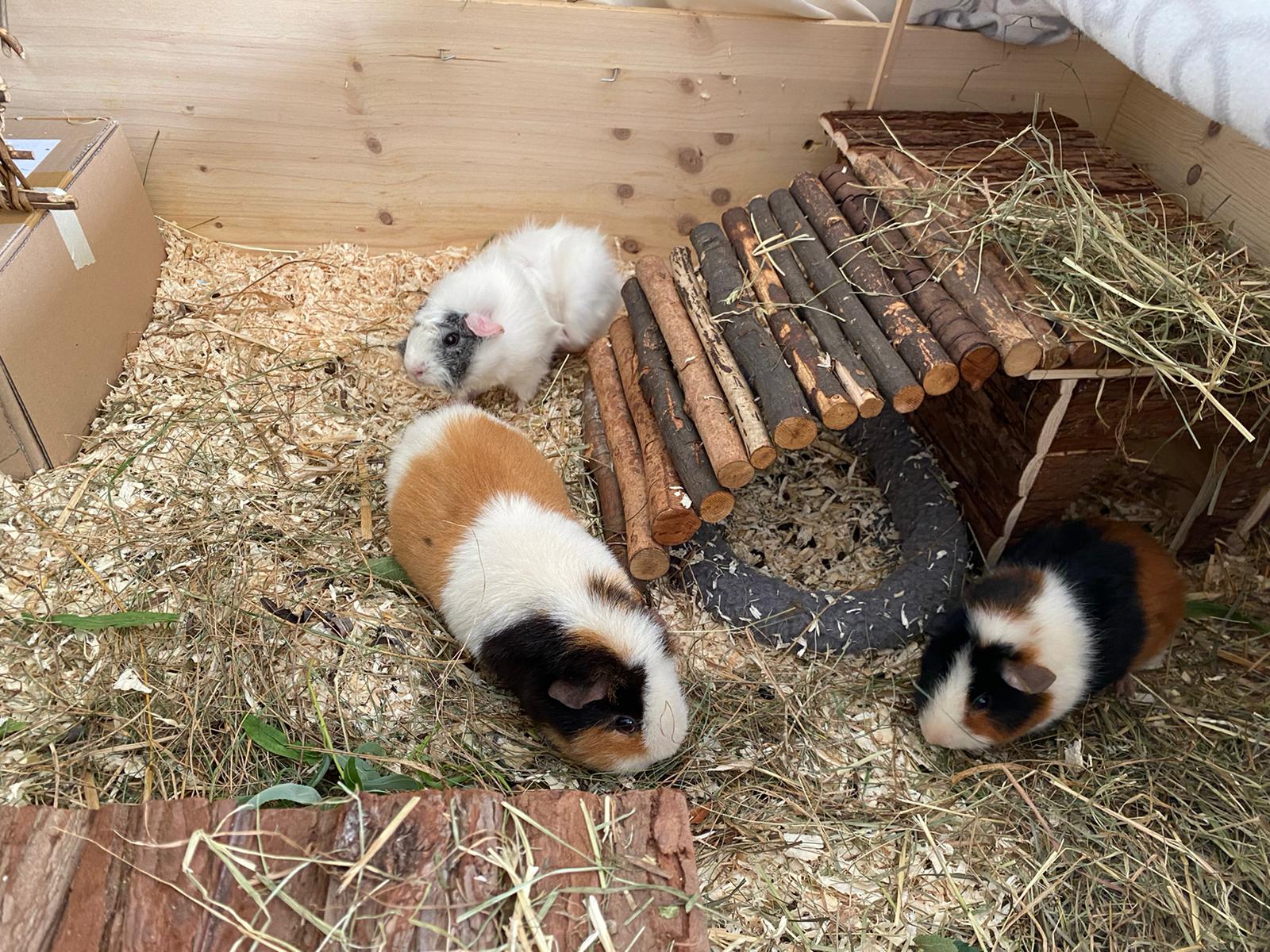 Das Trio ist auf einen uns bereits bekannten Platz in München gezogen. Sie bewohnen einen 2 m langen Eigenbau mit vielen Versteckmöglichkeiten, dürfen auch in der Wohnung laufen und im Sommer kommen sie in den Genuss das All-you-can-eat-Grasbuffet des Gartens zu plündern. Für das Trio ist ein Traum in Erfüllung gegangen und wir bedanken uns ganz herzlich bei Lisa und ihrer Familie für die erneute Adoption von Heuwuslern.