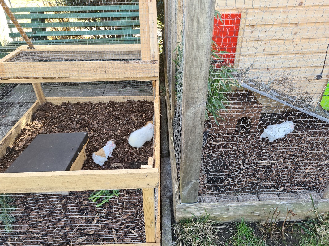 Zum Glück kam fast zeitgleich eine Anfrage nach Meerschweinchen in Außenhaltung bei uns an. Da alle unsere Tiere auf den Pflegestellen in Innenhaltung leben, können wir normalerweise zur kalten Jahreszeit keine Meerschweinchen in Außenhaltung vermitteln.