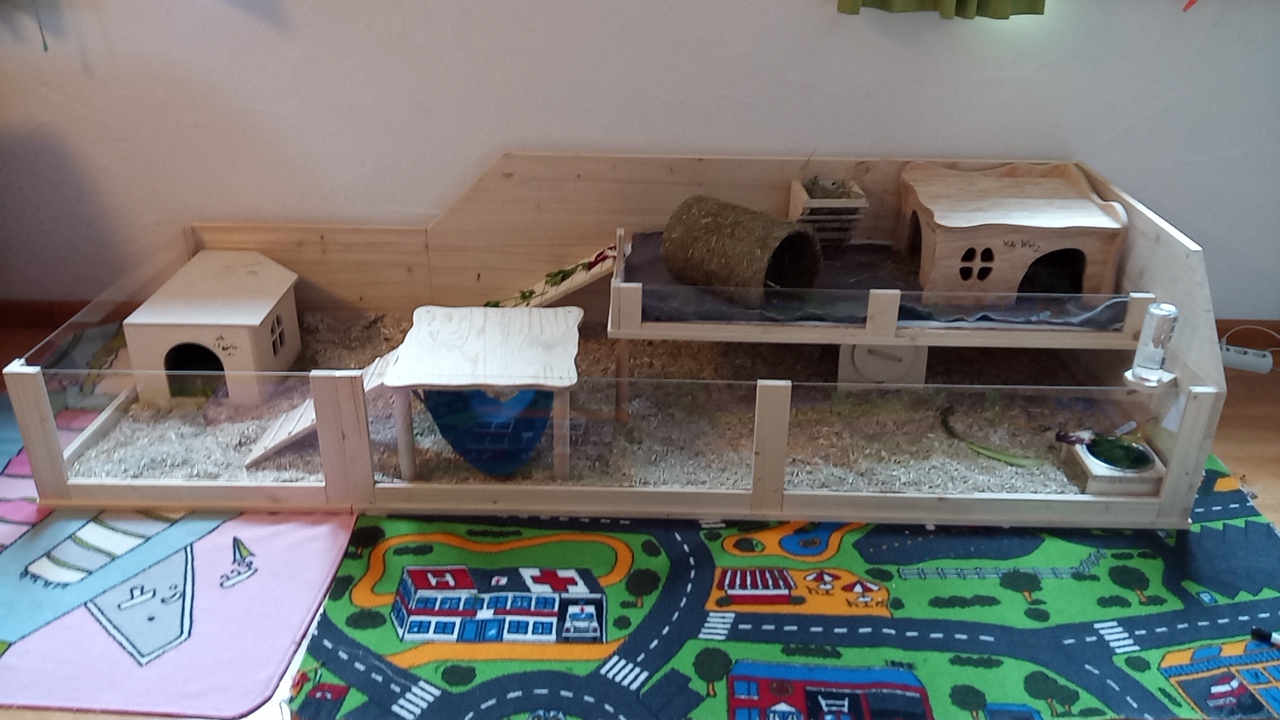 Leonard & Penny mussten nicht lange auf ein neues Zuhause warten. Die Zwei wurden schon sehnsüchtig erwartet und haben nach kurzer Eingewöhnungsphase das neue Gehege inspiziert und sich das angebotene Futter schmecken lassen. Die neuen Gurkenschnippler waren Bestens auf das Pärchen vorbereitet. Inzwischen haben sie sich gut eingelebt und nutzen auch die zweite Etage gerne und im Sommer dürfen die Beiden sich im Gartenauslauf das Gras schmecken lassen.