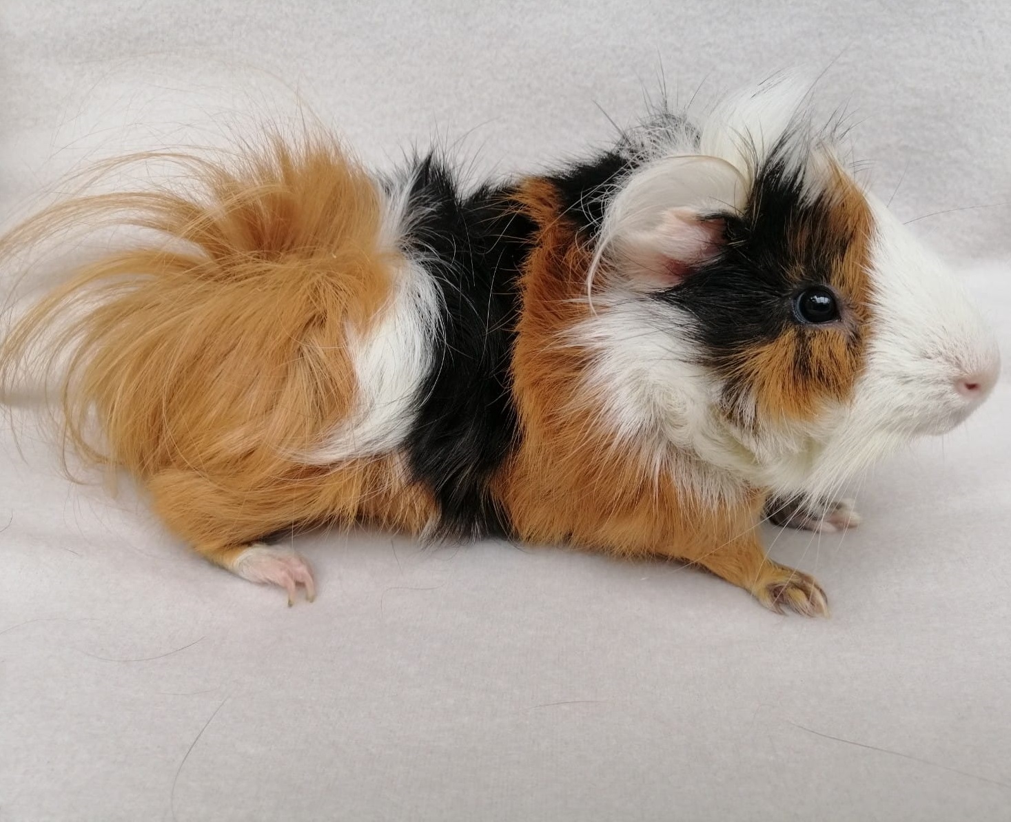 Es wurde ihnen gesagt, es handelt sich um zwei Mädchen. Na, was sollen wir sagen … wie so oft hat die Geschlechterbestimmung mal wieder hoffnungslos versagt. Mucki ist ein Kerl – und was für Einer. Er hat gleichmal – vollkommen unerwartet für die Besitzer – für Nachwuchs von 3 Babys gesorgt: 2 Mächen und 1 kleiner Bub haben am 16.07.2022 das Licht der Welt erblickt. Mucki wurde zwar einen Tag später von seiner kleinen Familie getrennt um schnellstmöglichst kastriert zu werden, aber wir befürchten, dass das Mädel erneut gedeckt wurde. Wir wurden um Hilfe gebeten, da für 5 Meerschweinchen der Platz im Eigenbau zu klein ist. Mucki wurde auf Veranlassung der Besitzer am 09.08. kastriert am 18.08. zu uns gebracht. Der kleine Baby-Bube ist mittlerweile auch kastriert und darf bei seiner Mama bleiben. Die beiden Mädchen werden Ende September ebenfalls ur Vermittlung an uns übergeben. Mucki ist ein total lustiger und besonders lebensfrediger kleiner Kerl. Er springt auf jeden Unterstand und muss Alles genau erkunden, insbesondere, wenn ins Gehege neue Häuser gestellt werden etc. Auch Kuschelsachen liebt er sehr. Er brommselt auch wie ein Weltmeister und das sieht aufgrund seiner langen Haare am Popo unglaublich witzig aus. Mucki est ein recht verfressenes Kerlchen, so dass wir glauben, dass er mit Futter gut "bestechlich" ist und er so recht schnell dem Menschen zugewandt wird.