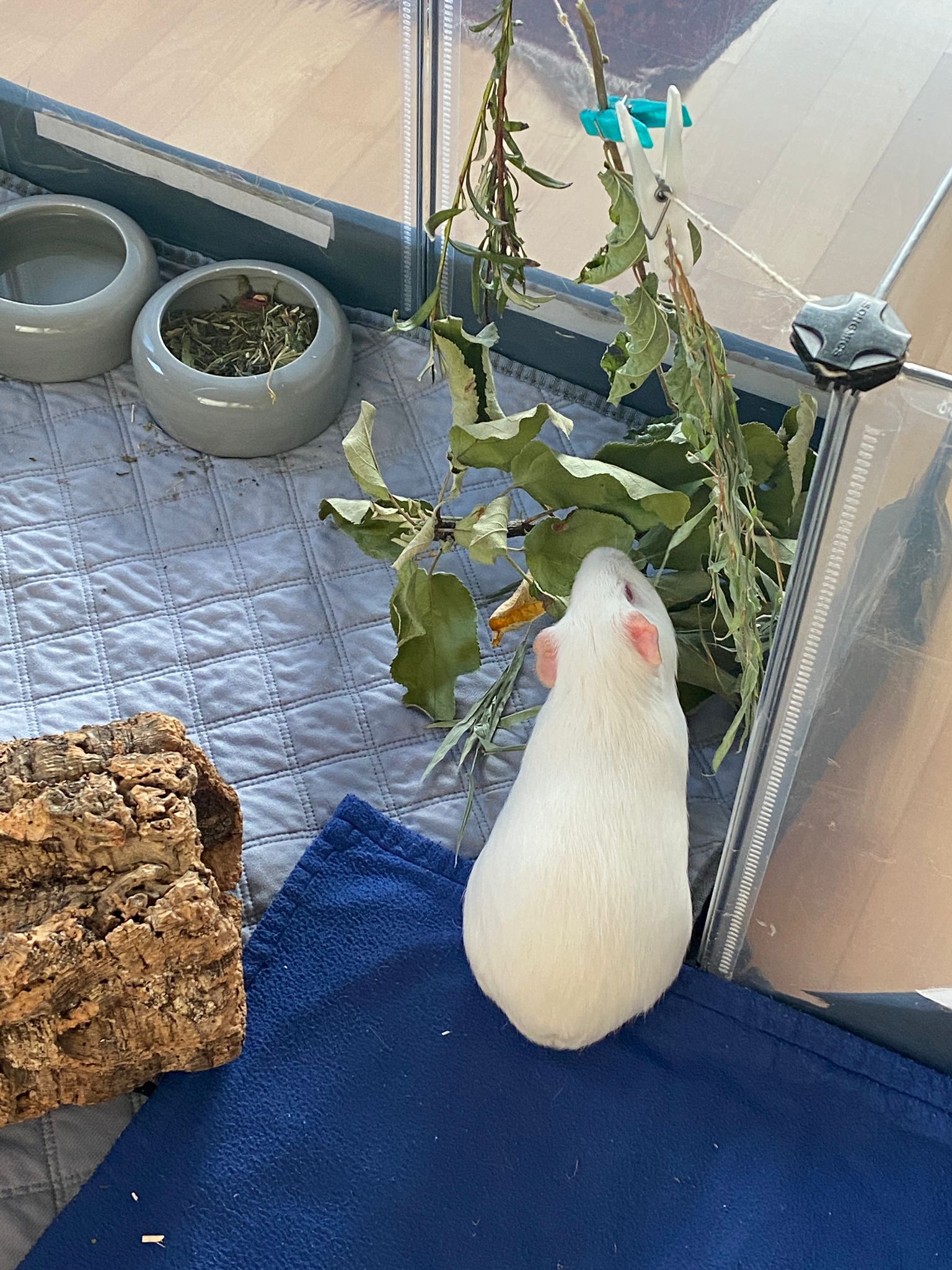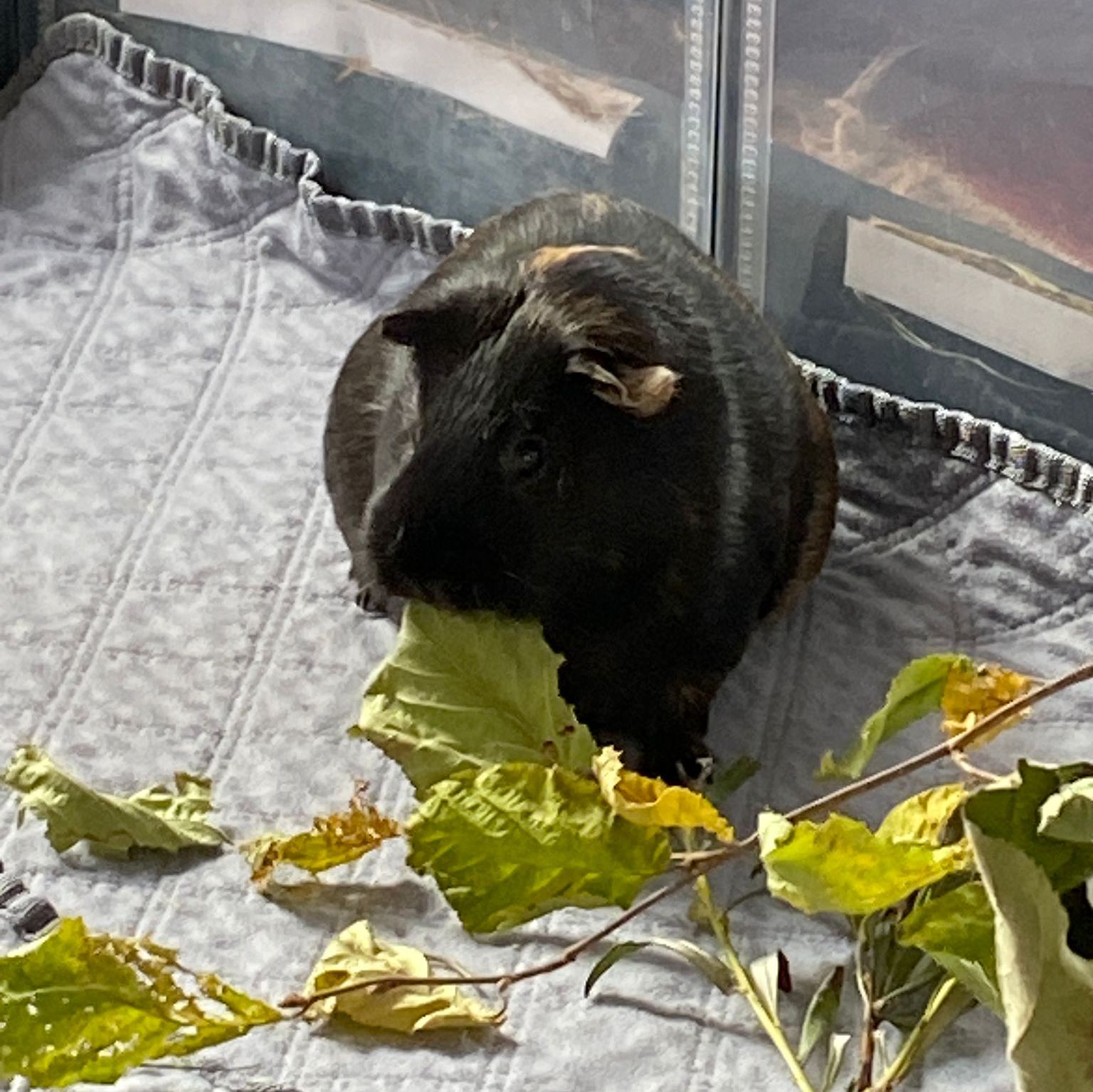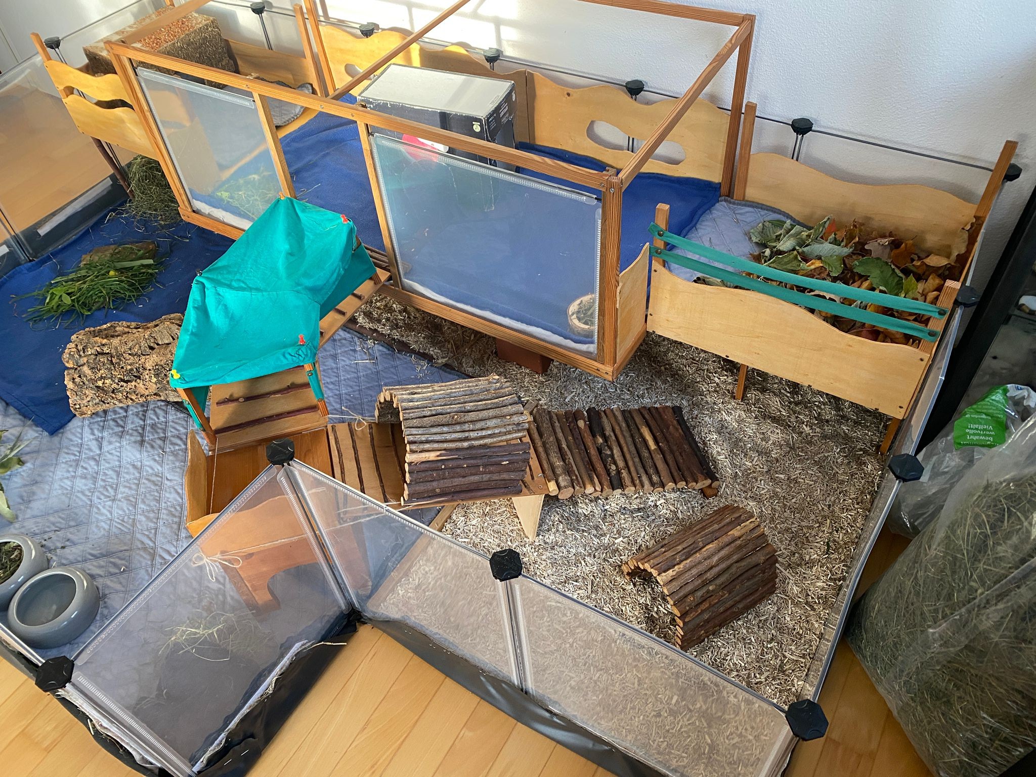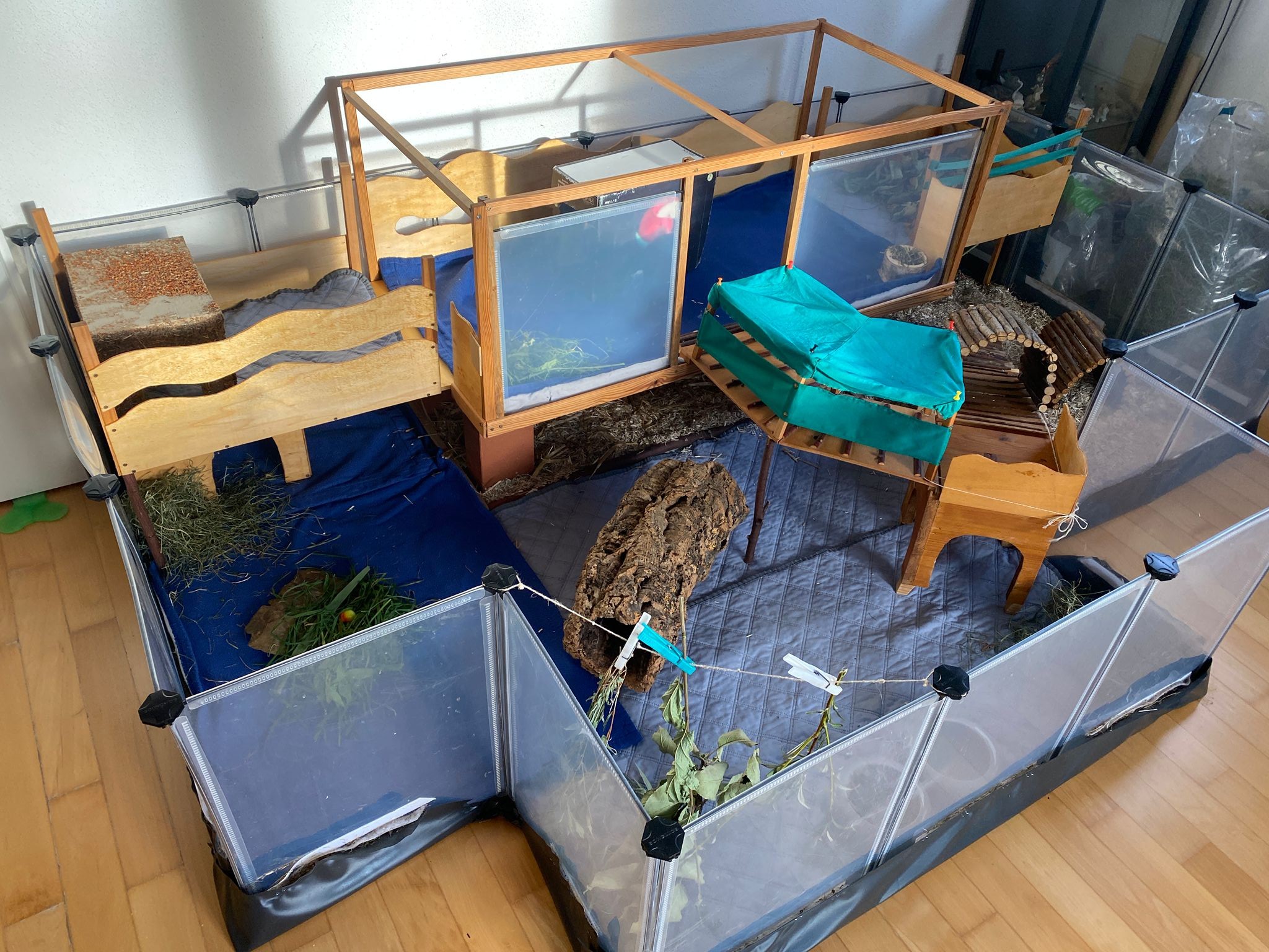 Ella und Lumpi mussten etwas länger warten, bis sich ein perfekter Platz für sie finden ließ. Aber das Warten hat sich gelohnt. Die beiden durften zu einem ehemaligen Labor-Meerschweinchen namens Rubina nach Haar ziehen, wessen Partner verstorben waren. Rubina war immer die Chefin im Gehege und den Rang wollte sie sich auch nicht mehr streitig machen lassen, wodurch die Vergesellschaftung spannend war. Sie hat schon deutlich gemacht, wer die sprichwörtlichen Hosen an hat. Für die Vergesellschaftung wurde zunächst – wie üblich – ein neutrales Gehege aufgebaut und das eigentliche Gehege "rückgebaut", also der Aufbau und die Häuser wurden herausgenommen, damit sie nach dem Umzug ins Gehege viel Platz hatten. Nach ein paar Tagen wurde nach und nach immer mehr in das Gehege gestellt bis es wieder vollumfänglich nutzbar war. Lumpi und auch Ella kommen mittlerweile gut klar und alle drei haben sich angefreundet. Das gemeinsame Fressen mit Rubina funktioniert prima und es ist friedlich im Stall. Sie liegen auch gerne nah bei einander. Und Lumpi hat es ganz wichtig mit dem Brommseln. Wir freuen uns sehr, dass es für das Duo ein Happy-End gab. Wir hätten es nicht übers Herz gebracht sie zu trennen. Und hier zeigte sich mal wieder, dass man oftmals Geduld braucht, bis man mit Harmonie belohnt wird.