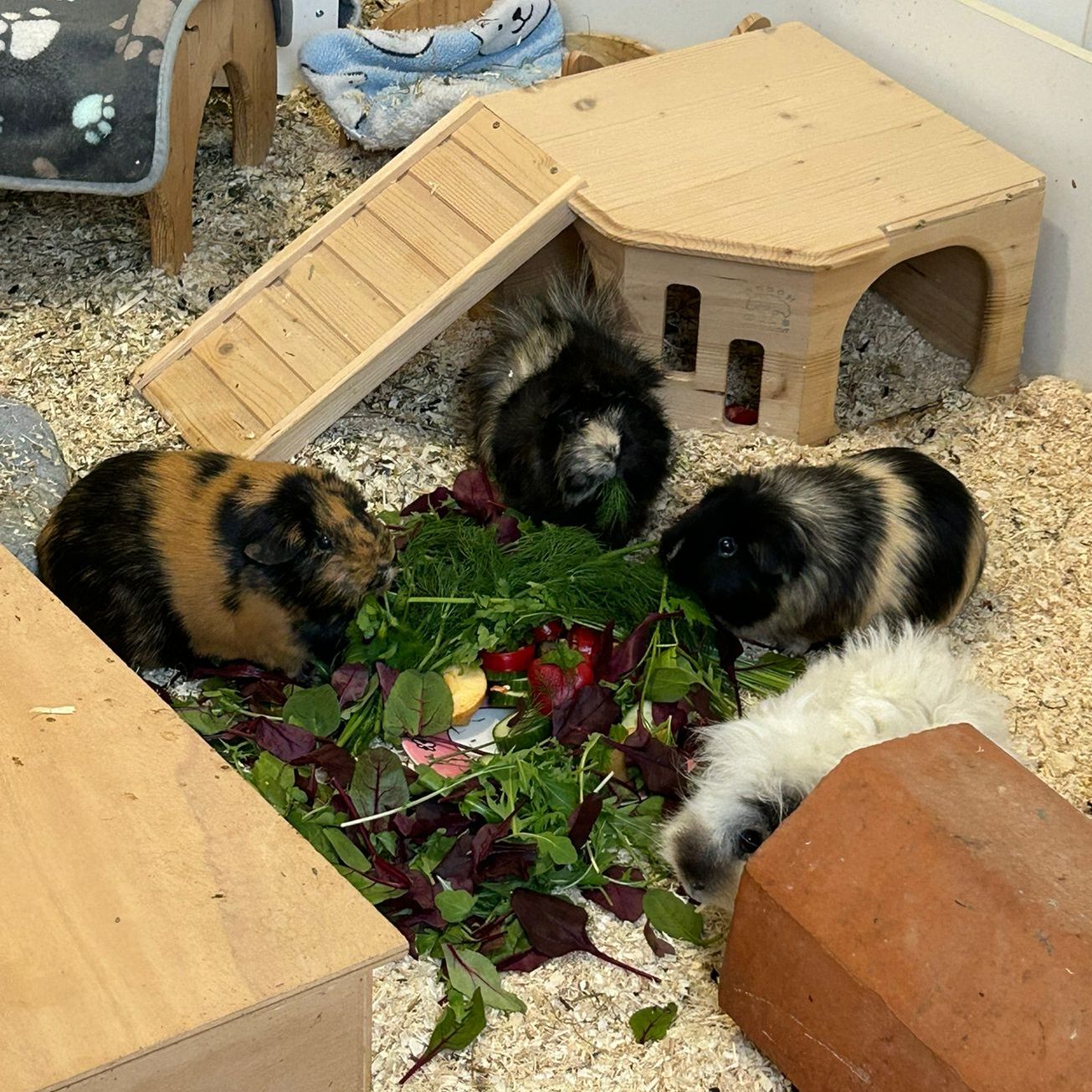 Lumi wird als charakterstark beschrieben und ist beim Fressen etwas wählerisch. Bisher kannten wir noch kein Meerschweinchen das Gurke verschmäht – Lumi ist so eine Kandidatin. Auch bei Salatsorten kann ihr Appetit schon mal variieren. Dafür mag sie gerne Heidelbeeren oder auch mal eine Weintraube. Menschen gegenüber ist sie etwas verhalten. Lumis Fell muss gepflegt und regelmäßig geschnitten werden. Aktuell ist sie kurz geschoren. Rassebedingt (Lunkarya) wird ihr Fell sehr lang. Auf der Pflegestelle sitzt sie noch meist im Häuschen. Sie bräuchte möglichst bald eine Gruppe in die sie integriert werden kann. Ein Kastrat mit Führungsqualität wäre wahrscheinlich von Vorteil.