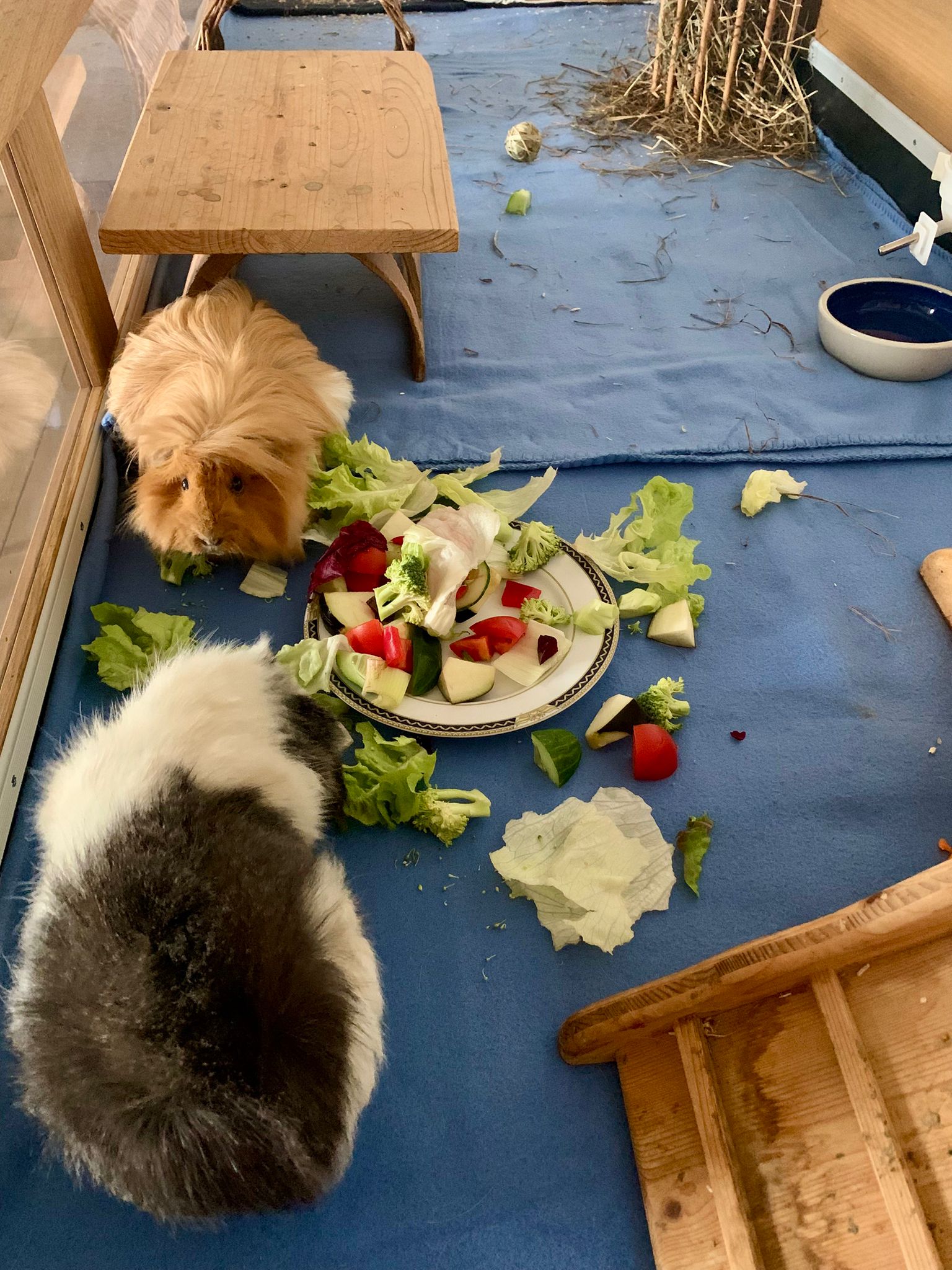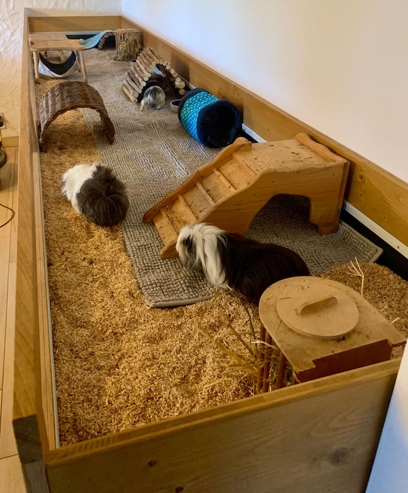 Rosi durfte zu Kastrat Rudi und seinen beiden Mädels Resi und Mari ziehen. Hier wohnen schon seit einigen Jahren immer wieder Heuwusler. Die Vergesellschaftung war total easy, alles harmonisch – aber dann kam ein Schicksalsschlag. Eine der beiden Mädels ist vollkommen unerwartet verstorben und im Stall herrschte auf einmal totale Unruhe. Leidtragend war Rosi, die auf einmal gemobbt und gejagt wurde und es einige Zeit fraglich war, ob sie bleiben kann. Aber auch hier haben sich die Wogen Gott sei Dank geglättet und nun ist wieder Frieden im Stall und alle rundherum glücklich.