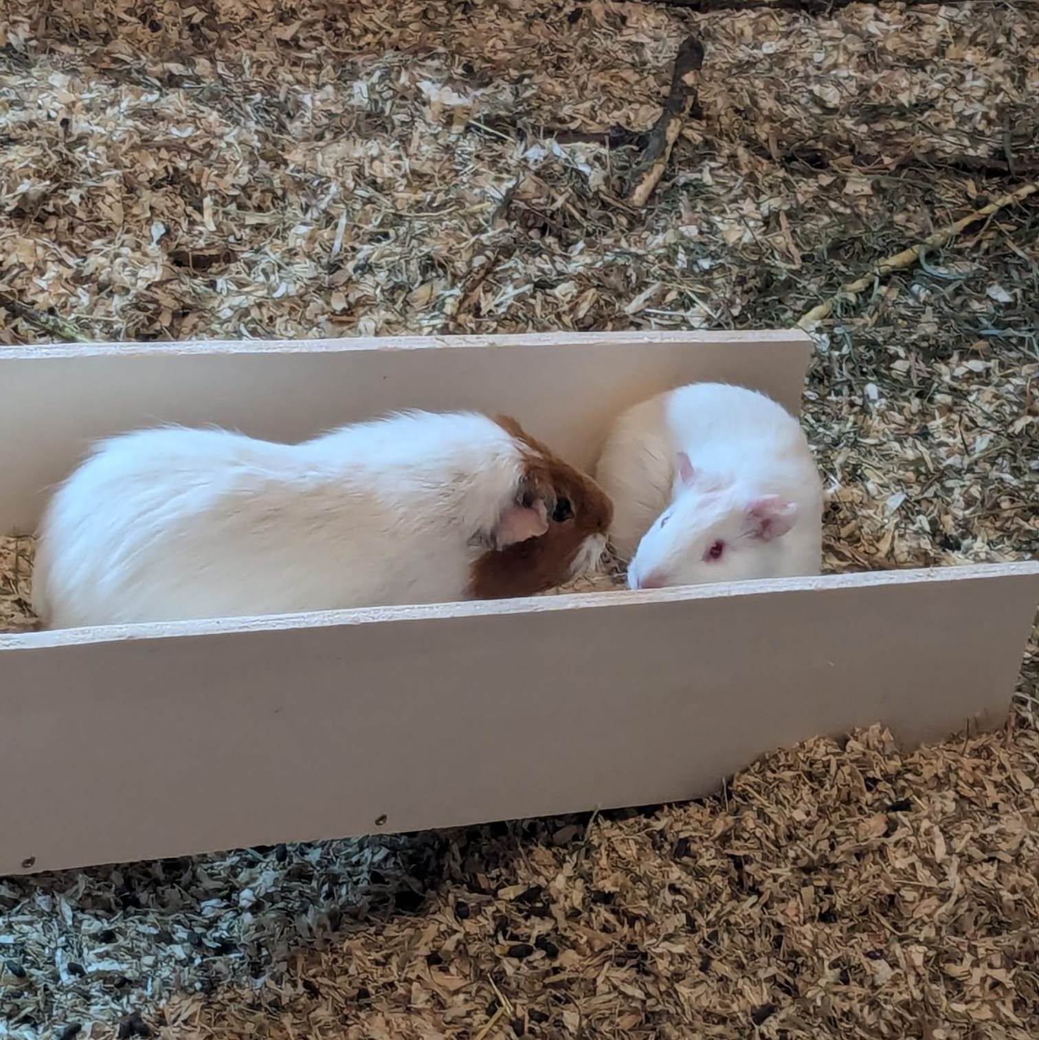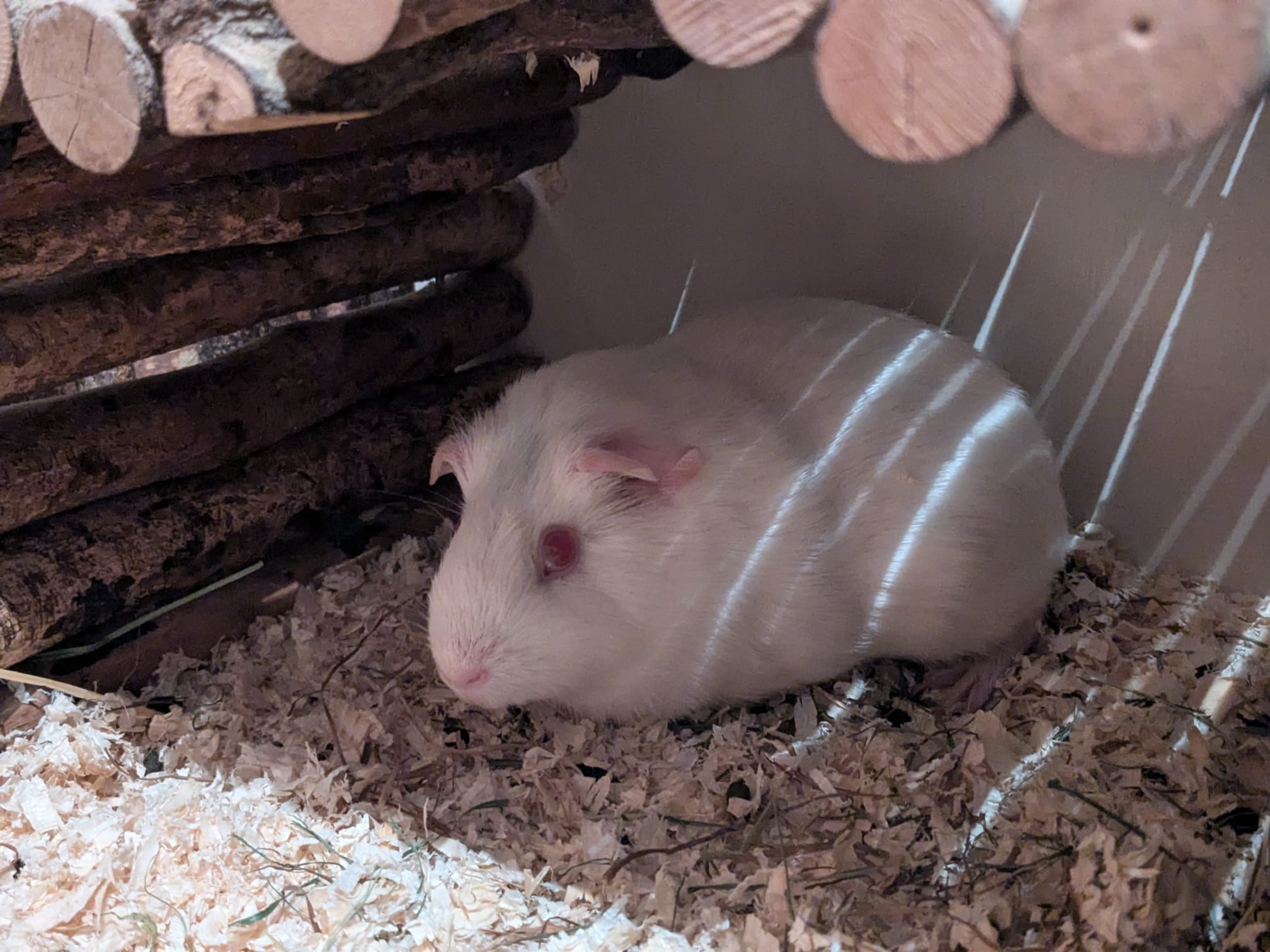 Was für ein Glück, dass es Menschen gibt, die ganz vernarrt in weiße Tiere sind: Die liebe Eva ist so ein Mensch. Bei weißen Meerschweinchen, bestenfalls noch mit roten Augen, da schlägt ihr Herz höher. Das führte Soraya und Yuma ins Glück. Bei Eva wohnen seit vielen Jahren immer wieder Heuwusler und diese beiden Flitzpiepen mischen die Gruppe nun ordentlich auf. Wir sind immer wieder überrascht, wie anpassungsfähig diese Tiere sind obwohl sie bis sie zu uns kamen keinerlei positive Erfahrung sammeln konnten. Sie sind so neugierig und lebensfroh. Aber lest selber was uns Eva geschrieben hat: