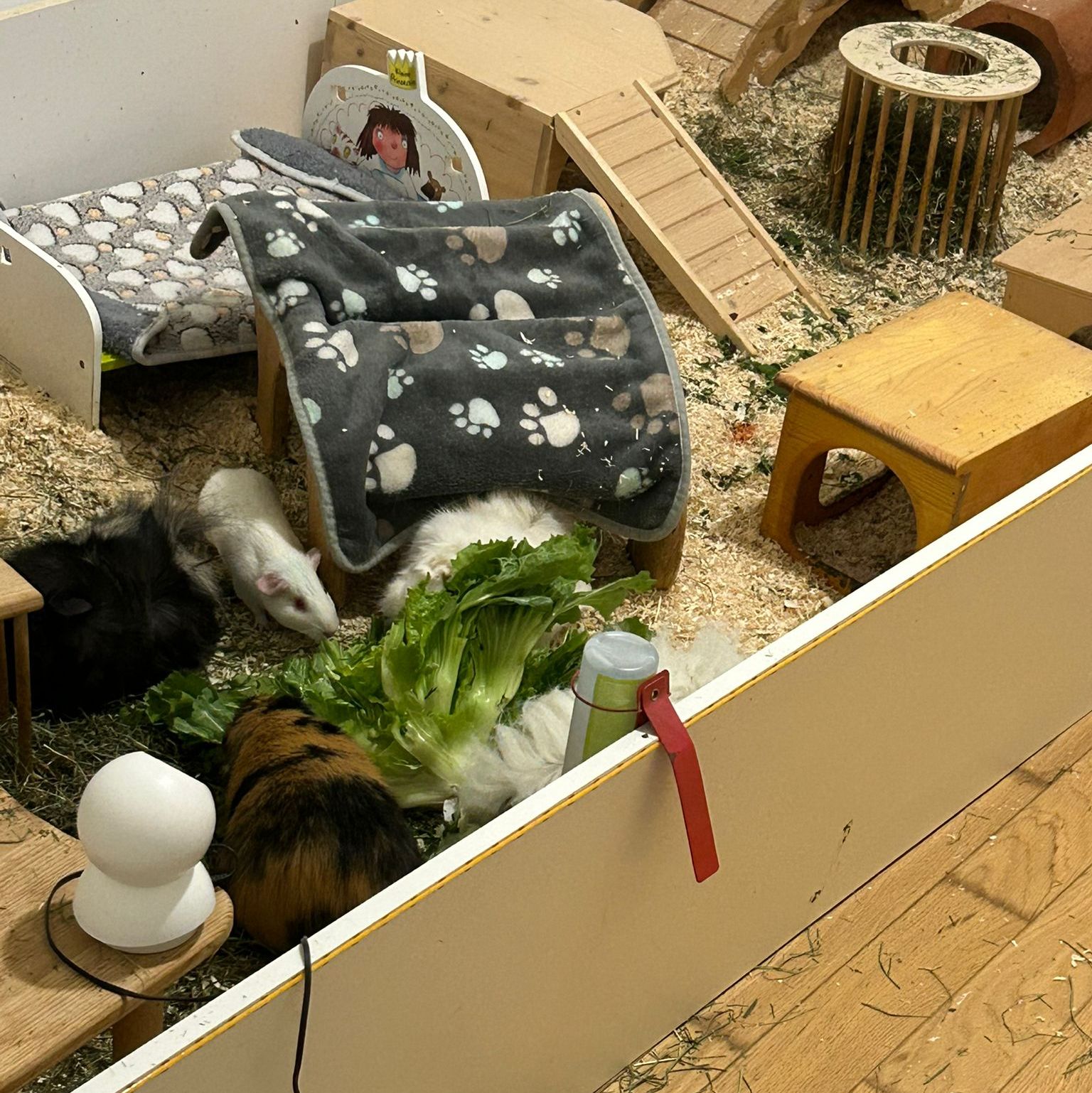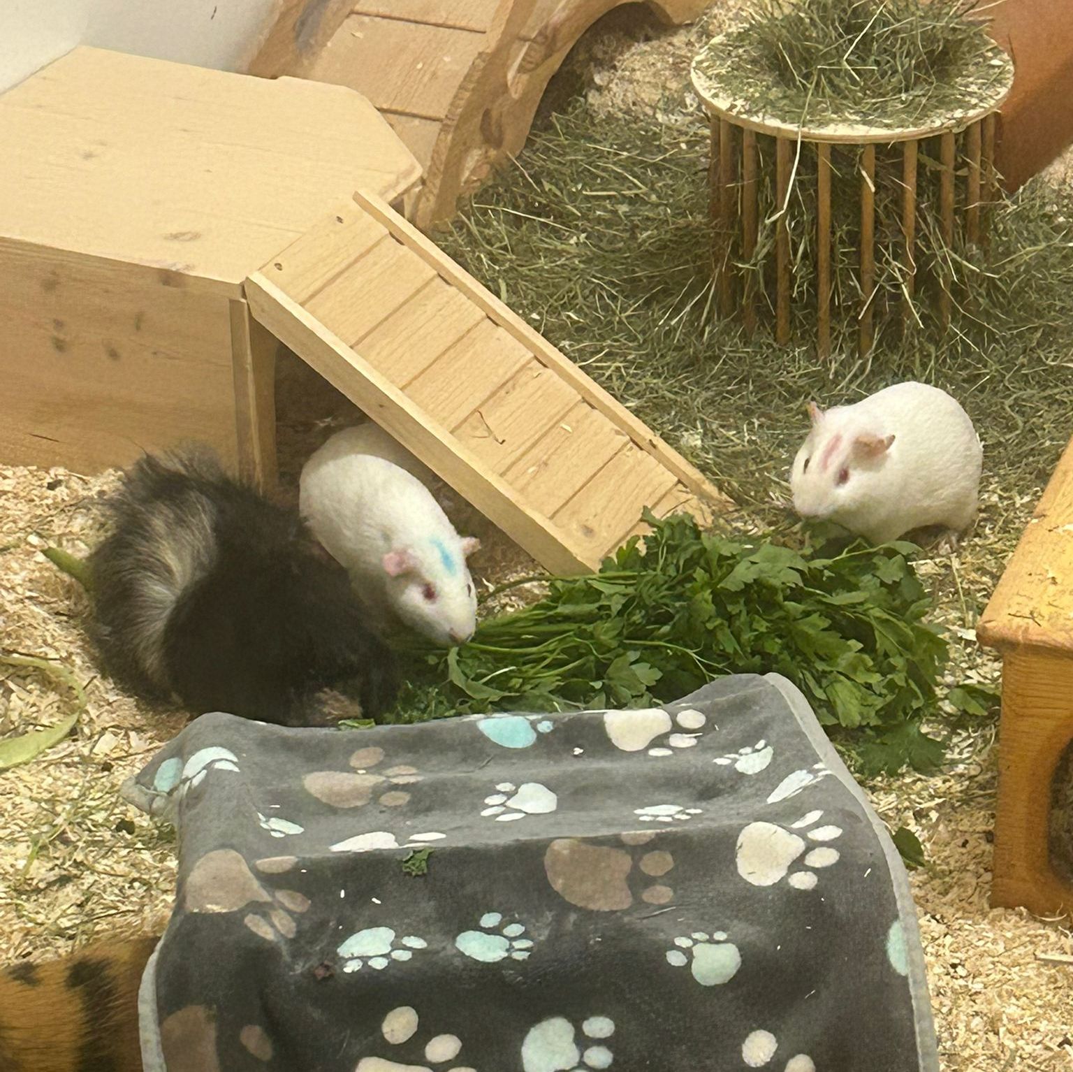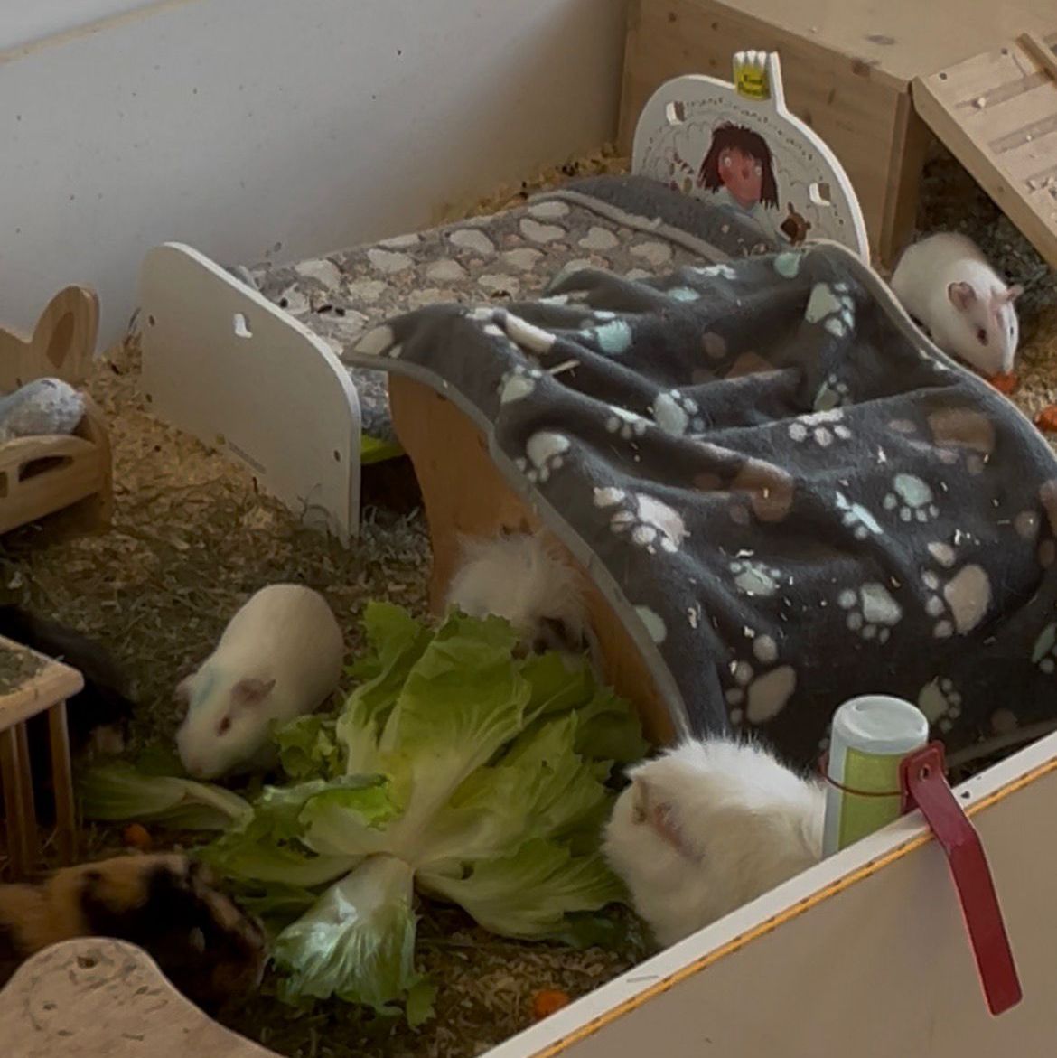 Nanni & Hanni hatten riesiges Glück und durften auf einen langjährig bekannten Platz zu vier erwachsenen Schweinchen ziehen.