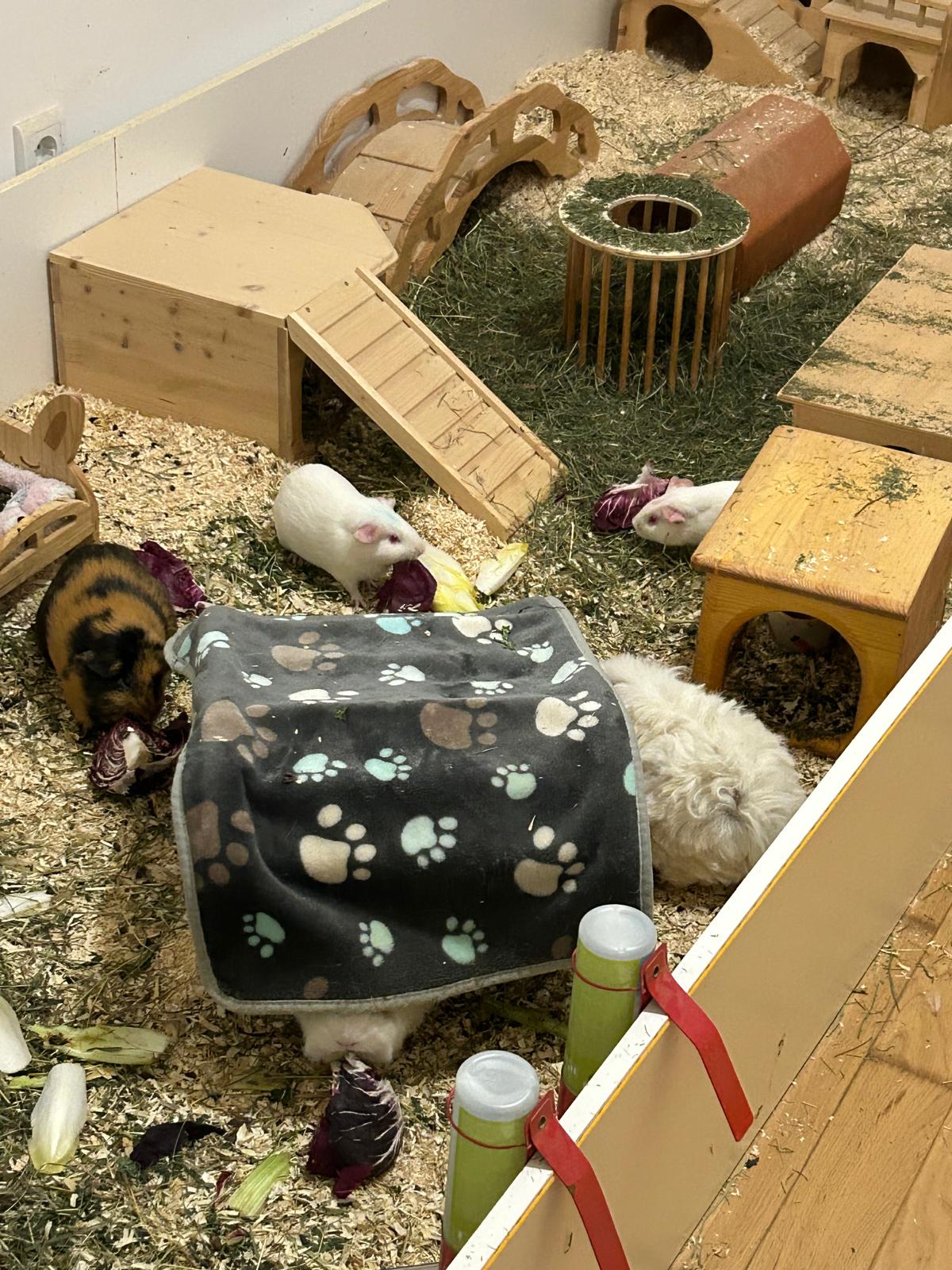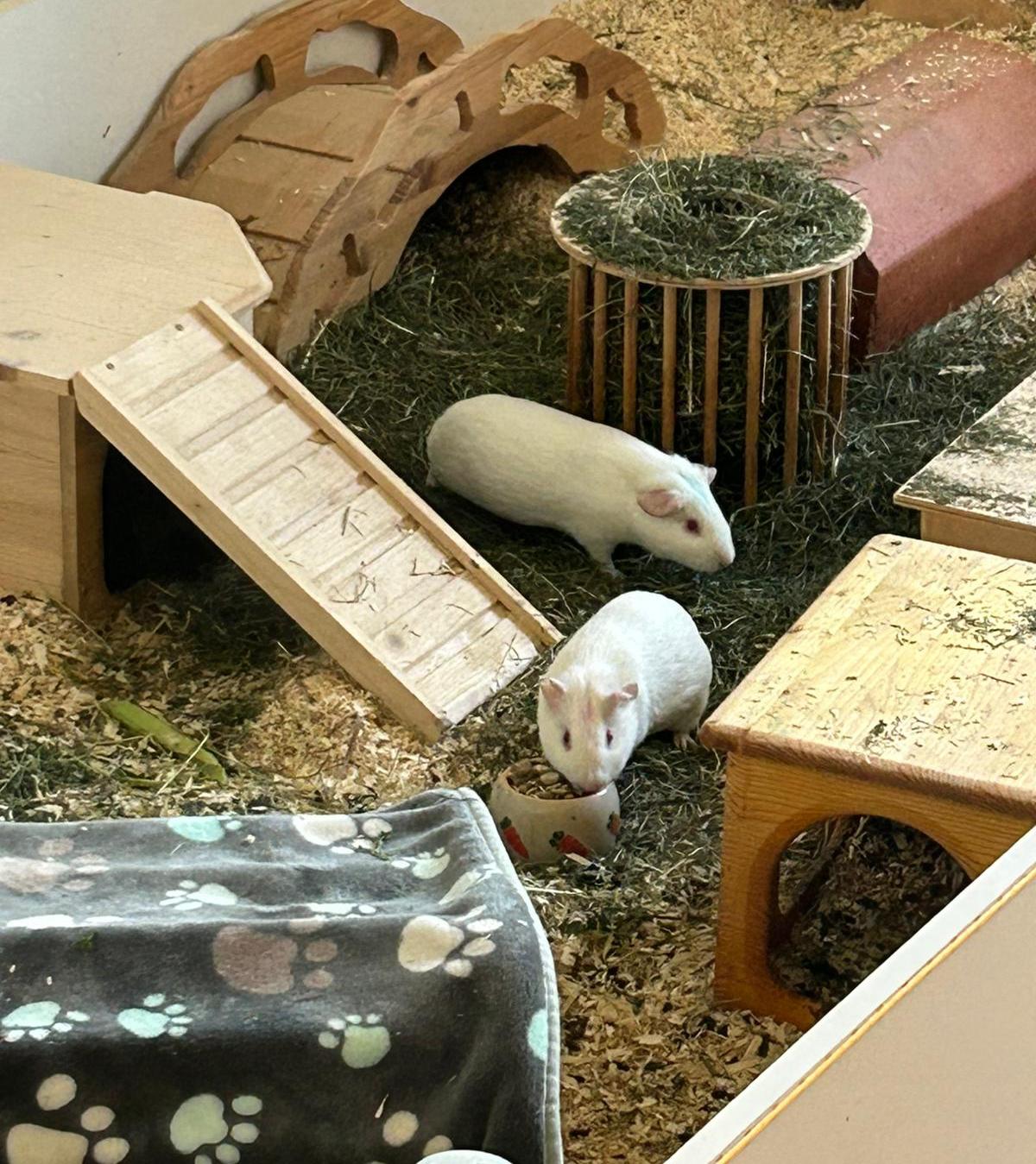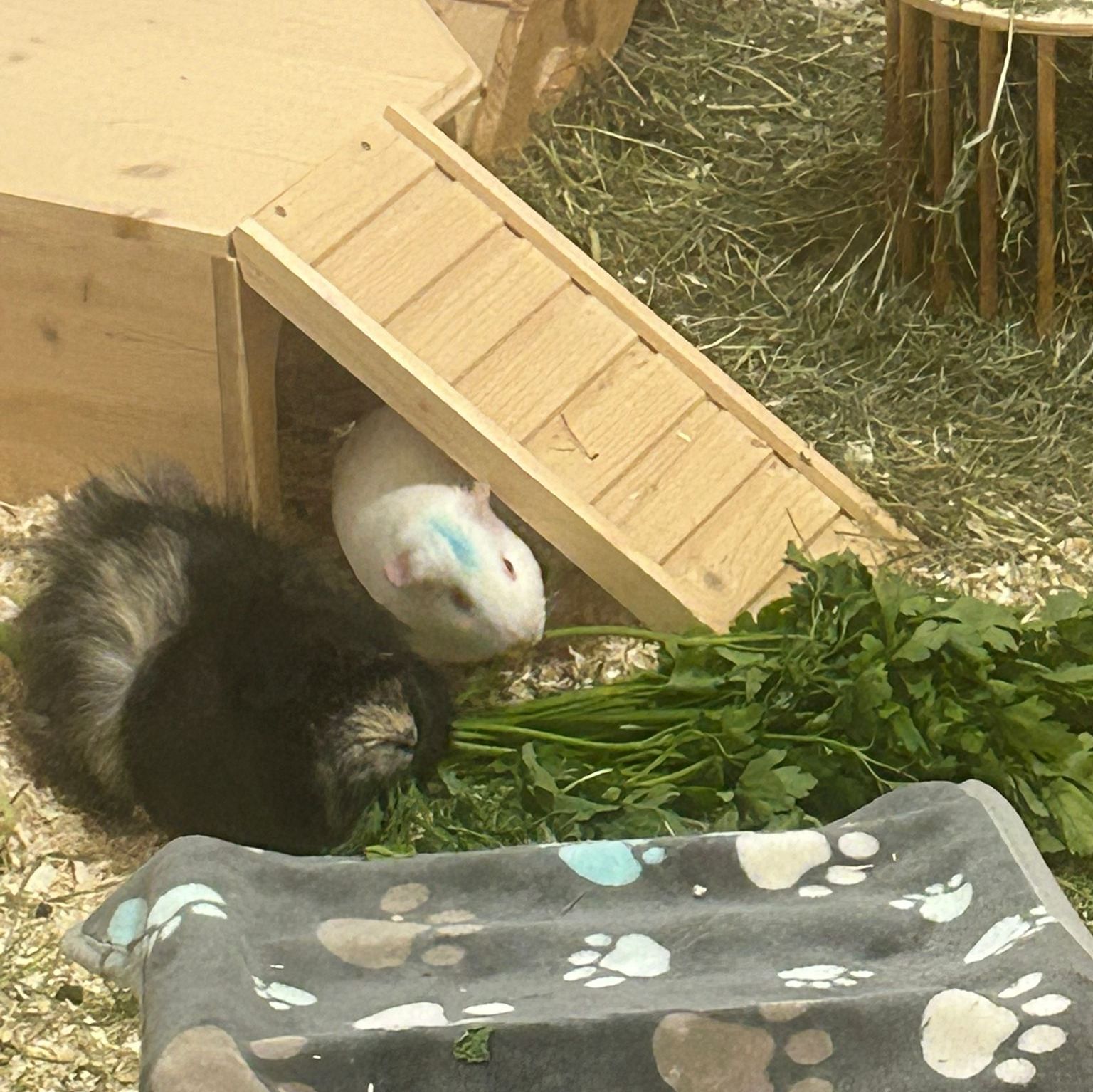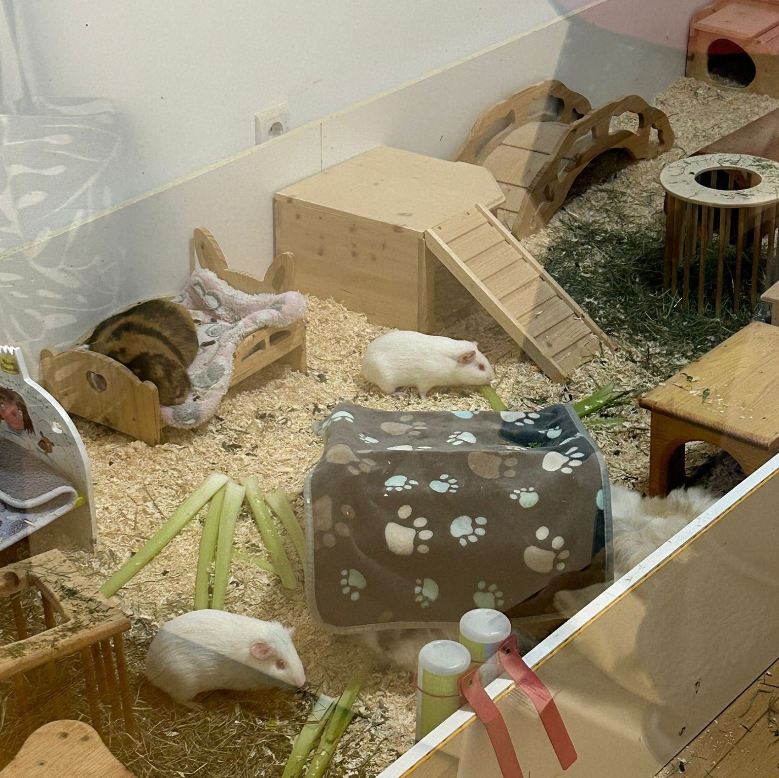 Nanni & Hanni hatten riesiges Glück und durften auf einen langjährig bekannten Platz zu vier erwachsenen Schweinchen ziehen.
