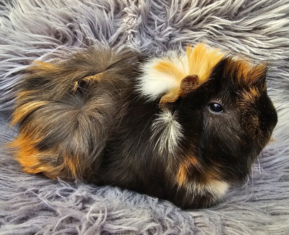 Josi ist ein eher genügsames und ruhiges Meerschweinchen. Sie geht vieles gelassen an und beobachtet ihre Umgebung aufmerksam. Durch ihre ruhige Art ergänzt sie sich besonders gut mit einem etwas aktiveren Partnertier, das sie ein wenig in Bewegung hält. Früher war das zum Beispiel bei ihrer Schwester so – ihr ist Josi oft hinterhergelaufen, wodurch sie automatisch auch etwas aktiver war. Trotz ihrer ruhigen Art ist Josi sehr neugierig. Sie liebt es, wenn sich in ihrem Gehege etwas verändert. Wenn Kuschelmatten, Häuschen oder andere Einrichtungsgegenstände umgestellt werden, beginnt sie sofort alles neu zu erkunden. Besonders gern nutzt sie gemütliche Plätze wie Kuschelmatten und kleine Unterschlüpfe, in die sie sich zurückziehen kann. Streicheleinheiten am Hals lässt Josi sich gerne gefallen. Herausnehmen mag sie dagegen nicht besonders. Mit etwas Geduld und einem kleinen Leckerli kommt sie aber neugierig ans Gehege und schaut nach, was es gibt. Schnelle Bewegungen mag sie nicht so gern, dennoch ist sie insgesamt kein sehr scheues Meerschweinchen, sondern eher vorsichtig und aufmerksam.